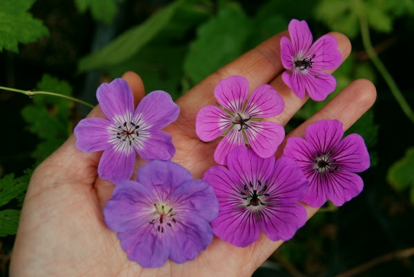 G. maculatum mögen keine zu warmen und trockenen Standorte und keine verdichteten Böden. Wenn man das beachtet, sind sie wüchsige, reichblühende Pflanzen! Die dunkelblättrigen Sorten kann man auch in sonnigeren Beeten verwenden, aber es darf nie richtig warm sein (also lieber etwas zwischen anderen Stauden eingeklemmt, als zu frei).Von G. wallichianum 'Sweet Heidi' habe ich noch ein realistisches Bild gefunden.
