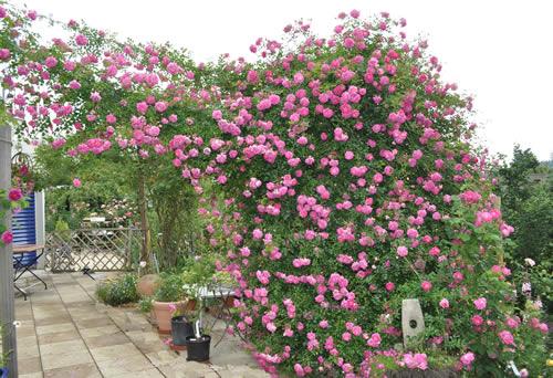 Diesen versuche ich solange hinzuhalten, damit er dann so richtig blüht am 11.6.Alexandre Girault, der Platzhirsch und Gigant auf der Terrasse mit tausenden von Blütenknöpfen. Ein 10m Rosenhaufen!