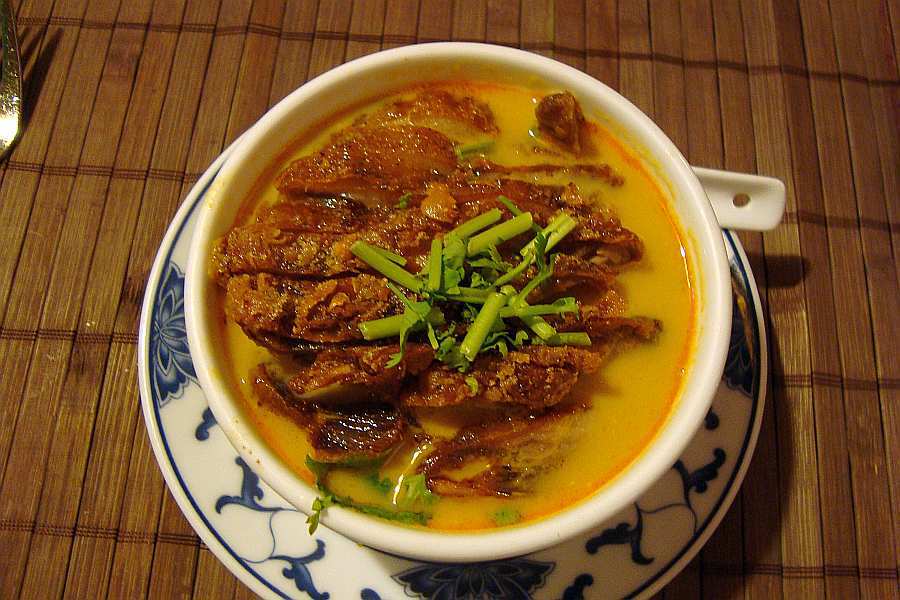 ... erst gab es Spargelcreme-Suppe mit gebratenen Schinkenstreifen