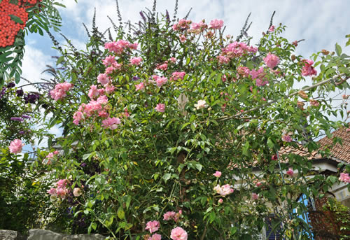 Hauswände? Da klettert nur EdH und zwar fast stelbständig!Die anderen stehen an Bögen, oder einem Pfahl (Papillon).Wenns keine perfekten Bilder sein müssen, kann ich was einstellen.