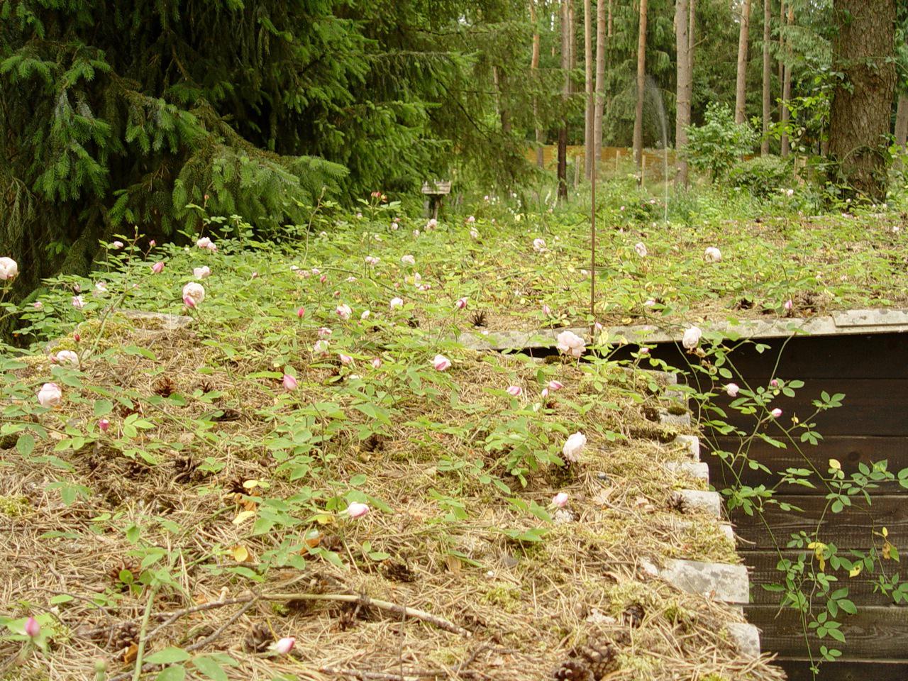 Vor allen Dingen ist die Dame ausgesprochen robust. Ich pflanzte sie nach dem Motto 'friss oder stirb' in ein 'schwarzes Loch'. 50 cm zwischen Schuppenrückseite und finstrem Tann der Nachbarn, fast kein Licht von rechts und links, minimales Licht von oben. Eigentlich hab ich keinen Pfifferling für das Mädel gegeben. Aber sie hat es gepackt und berankt auf dem Foto von 2008 sehr nett das Schuppendach . Ein aktuelleres Foto hab ich leider nicht. Zwischenzeitlich sehen die alten Haupttriebe auf der Schuppenrückseite schwarz und tot aus, dennoch gibt es grüne Triebe daraus. Ich kann nur meinen nicht vorhanden Hut ziehen.