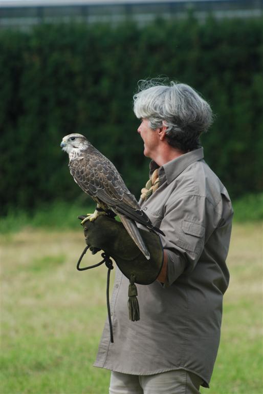 Weiter geht es mit Swerver dem Sakerflaken. Man lernte wie man ihn auf die Hand setzt fest macht mit dem Falknerknoten und mit der Nase in den Wind dreht .