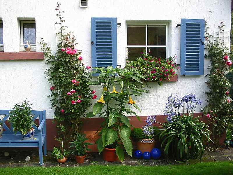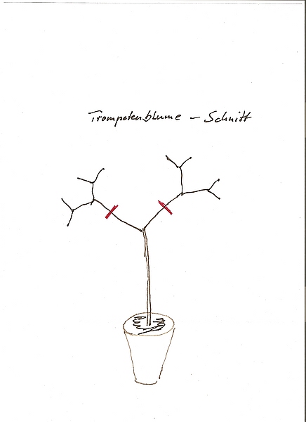 Ich weiß nicht, ob ich die Bilder nicht sogar schonmal gezeigt hatte (sind leider nicht die besten).So sahen meine Engelstrompeten vor fünf Jahren aus. Die Kübel habe ich in die Erde eingelassen, weil sie sonst nur umkippten. Zwanzig Liter Wasser täglich (pro Kübel), einmal die Woche stinknormalen Flüssigdünger ins Gießwasser und dann kam das dabei heraus: :) BildBildSie waren über zwei Meter groß. Im Winter habe ich sie zuletzt in voller Größe liegend im Keller überwintert. Irgendwann war ich den großen Wasserbedarf und die Kübelschlepperei leid und habe die beiden gelben ihrem Schicksal (dem Winter) überlassen. Einzig die rosafarbene habe ich immernoch.
