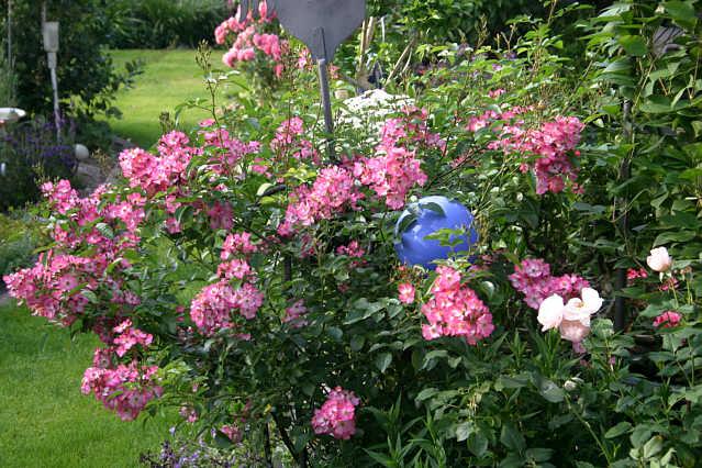 Hallo und vielen Dank für Eure vielen Antworten, ich bin ganz überwältigt...Martina, danke für das Einstellen der Bilder. Deine Hecke sieht sehr schön aus und für einer andere Stellen in unserem Garten könnte ich mir so etwas auch vorstellen. Aber für unser Torhaus wäre etwas in dieser Art wirklich zu wuchtig und wild. Ich habe mir gestern die Webseite von Herrn Sievers noch mal genauer angesehen und seine Everbooming Blush Rosen gefallen mir sehr gut. Ich habe bei ihm angefragt, wo man die denn beziehen kann. Heute morgen schrieb er mir, dass man diese Rosen leider nicht bekommen kann, bzw. man dann die Vermehrungsrechte gleich mitkaufen muss, da diese Rosen nicht geschütz sind. Er befürchtet, dass seine Rosen unrechtmässig in die Vermehrung gelangen und hat wohl schon schlechte Erfahrungen gemacht. Natürlich wäre ein Kauf für einen Privatmenschen viel zu teuer. Schade, sie sehen sehr verlockend aus.Jacques Cartier und Rose de Resht habe ich schon an anderer Stelle in meinem Garten, die Rose de Resht sogar 3 mal. Den weissen Jacques kenne ich auch. Im Prinzip hatte ich auch schon an diese Rosen gedacht, sie wären sicher gut geeignet, aber Frau will ja auch mal wat Neues ausprobieren. Aus dem Rennen sind sie aber noch nicht. In meiner näheren Auswahl sind jetzt auch Hyde Hall, Angela, Petit Papillon und Mozart. Die könnten doch auch ganz gut zusammen passen, was meint ihr?Ich finde, auf das ADR Siegel kann man sich nicht immer verlassen. Ich habe eine Eden85, die hatte dieses Jahr reichlich Sternrusstau und der Wuchs lässt auch zu wünschen übrig (was natürlich an meinem Schnitt liegen kann). Ich habe aber auch schon an anderer Stelle gelesen, dass sie mehr 1-2triebig wächst, die Triebe dann aber baumstammartig. So ungefähr sieht sie auch bei mir aus. Elis, ich werde mir aber die Rosen auf Deiner Liste noch mal genau ansehen. An Rosarium Uetersen hatte ich auch schon gedacht, aber die habe ich eben auch schon. Blüht bei mir an ziemlich schattiger Stelle überreichlich und ist ziemlich gesund. Vom Wuchs her ist sie aber nicht gerade kompakt. Was haltet Ihr denn von Gloire des Rosomanes? Angeblich pflanzt man in Amerika Hecken damit. Ich habe hier eine auf meinem Fensterbrett stehen, die noch auf Ihre Mitfahrgelegenheit nach Frankreich wartet (dort ist mein Garten nämlich, leider nicht im Süden und nicht am Meer). Ich konnte Ihr bei meinem letzten Besuch in Steinfurth nicht widerstehen und obwohl im Topf, blüht sie gerade üppigst und wunderschön. Ausserdem gibt es hier noch eine Joanne de Feligonde, die sich mir in einem Baumarkt an den Hals schmiss und die neben der samtig karminroten Gloire heute morgen herzallerliebst ihr Apricot entfaltete. Ich bin ganz erstaunt, wie gut das farblich zusammen geht. Könnte ich die Joanne ohne Stütze als Strauchrose ziehen? Immer noch im Rennen ist bei mir Erfurt. Die Erfurt hat mir in Steinfurth eben auch sehr gut gefallen. Wie hoch wird Erfurt denn in Wirklichkeit? Ist sie standfest? Würde doch auch sehr schön zu Petit Papillon und Mozart passen. Ich finde überhaupt einfachblühende oder halbgefüllte Rosen sehr schön. Und an der Stelle, wo die Hecke gepflanzt wird, würden sie das Natürliche mit dem Dekorativen sehr schön verbinden.Hat jemand von Euch Apricotfarben mit kühlen Rottönen und Pinktönen kombiniert? Ist das ansprechend oder eher schwierig? Ist sicher eine gewagte Kombination, aber vielleicht kann das ja auch sehr schön aussehen, wenn es entsprechende farbliche Übergänge gibt?