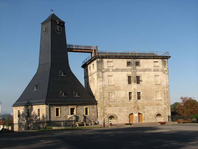 das gebaeude rund um die bohrung, aus der die sole gefoerdert wird, die man im gradierwerk verrieselt: