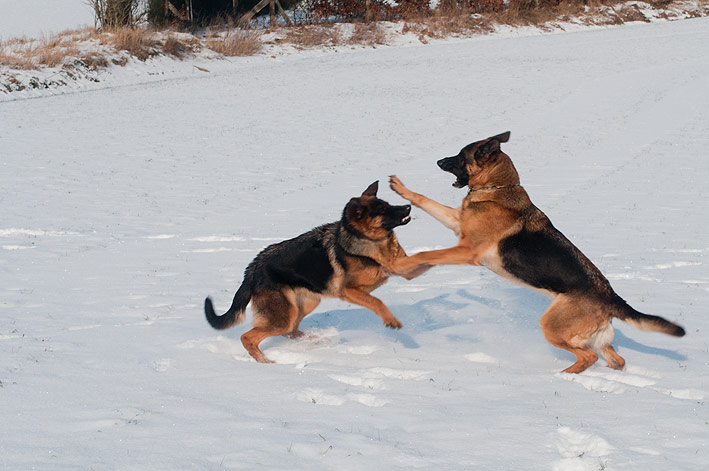 Ja, das braucht etwas Erfahrung im Hunde buchstabieren, bis man da auf Anhieb sieht, dass das kein Hundekampf ist sondern richtig viel Spaß.