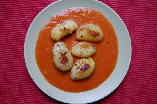 Heute gab es Rosmarinkartoffeln auf Tomatencreme.