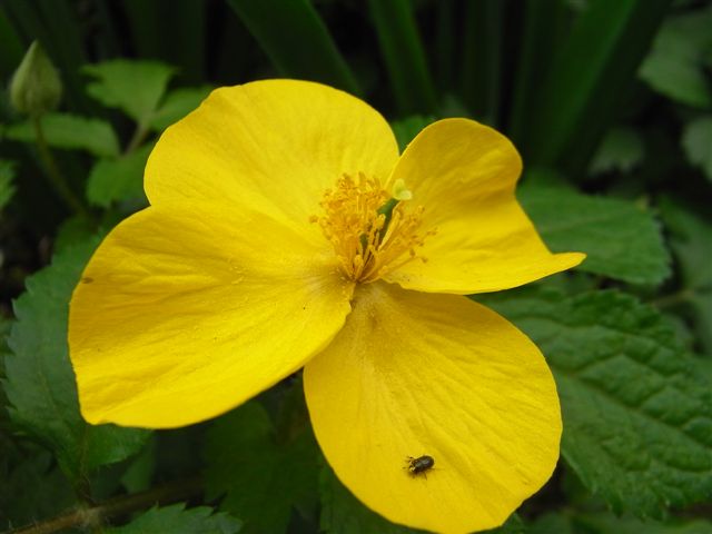 Da sitzt ein Rapsglanzkäfer (?) mit gelber Nase auf dem Waldmohn,Was wäre das Bild ohne den netten Kerl?