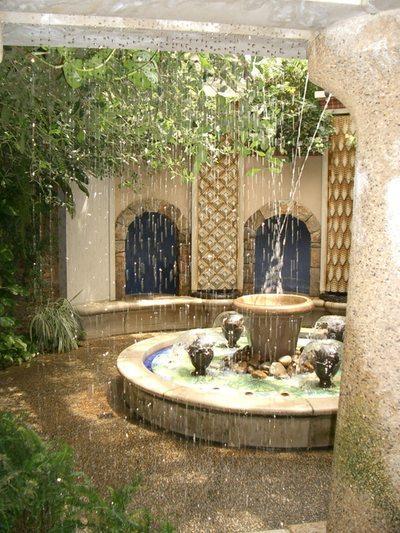 sehr lauschig und deutlich orientalisch: ein ort für kinder mit lustigen wasserspeiern (hier nicht im bild), einer wasserorgel und plätzen zum verstecken. ab und zu hört man dschungelähnliche geräusche vom band, exotische vogelrufe, tigergebrüll...