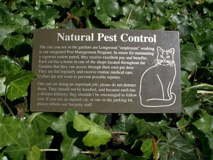und zum schluß noch ein schild, daß mich sehr erfreut und auch irgendwie an den foerster-garten in potsdam erinnert hat (ich versuche mich mal an einer übersetzung):die katzen, die sie in den gärten sehen, sind longwoods angestellte, die in unserem integrierten schädlings-management-programm arbeiten. im austausch für ihren dienst als nagetier-wachdienst erhalten sie exzellente bezahlung und vergünstigungen. jede katze hat ihr zuhause in einem der orte, die überall im park zu finden sind, den sie durch ihre eigene katzentür betreten kann. sie werden regelmäßig gefüttert und erhalten routinemäßig ärztliche versorgung. halsbänder werden von ihnen nicht getragen, um eventuelle verletzungen zu vermeiden.unsere katzen verrichten eine wichtige arbeit, bitte stören sie sich nicht dabei. sie sollten nicht gestreichelt werden; und weil jede ihre eigenes territorium hat, sollten sie auch nicht ermuntert werden, ihnen zu folgen. wenn sie eine verletzte katze sehen oder eine katze auf dem parkplatz, bitte informieren sie das sicherheitspersonal.