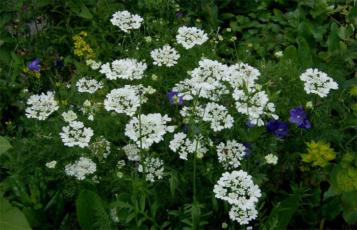 Der Strahlenbreitsame, ein leider nur einjähriger heimischer Doldenblütler, blüht zur Zeit in makellosem Weiß.