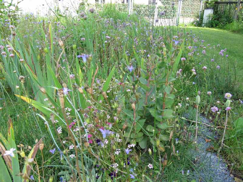 Heute bin ich entschlossen zu Werk gegangen: Die Glockenblumen mussten raus, die Strandnelken wurden dezimiert. Aber ich mache mir keine Illusionen: es flogen genügend Samen rum.