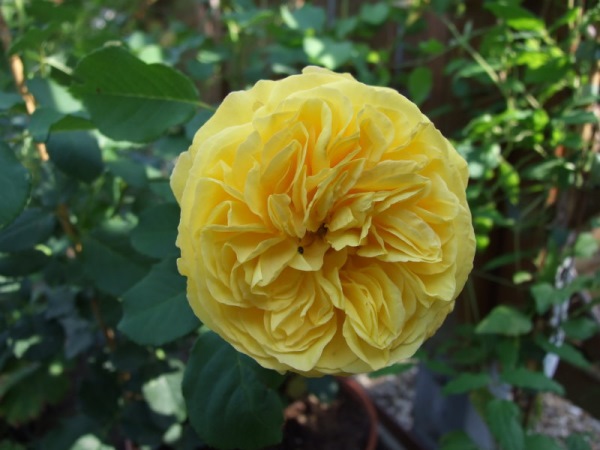 Also, nachdem mir die Skylight nicht mehr aus dem Kopf ging, habe ich sie mir im Juni auf eine Gartenmesse mitbringen lassen. Hatte natürlich fest damit gerechnet, dass die Rose zu dem Zeitpunkt bereits blühen würde. War leider nicht so, stattdessen bekam ich ein relativ frisch getopftes, nicht blühendes Exemplar, also nix mit Blüten vorher angucken.