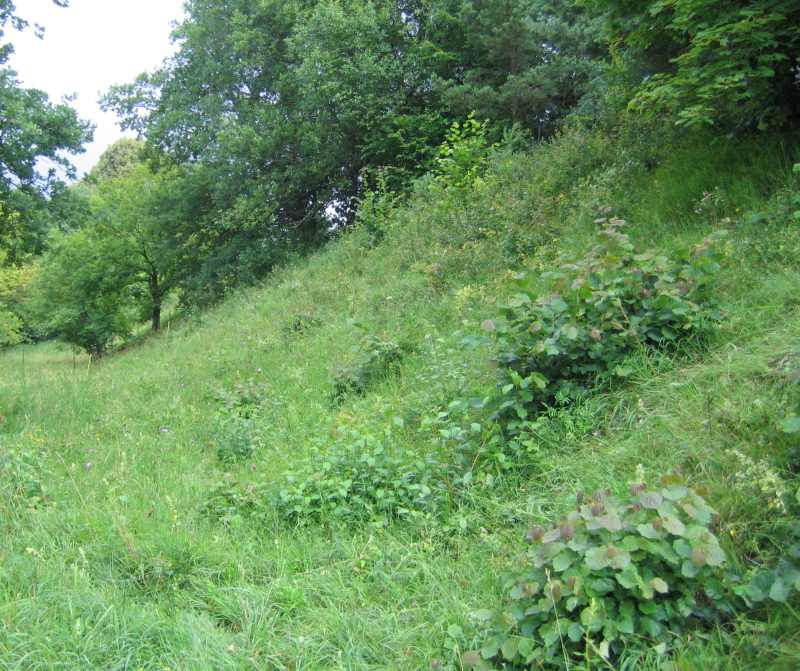 ) und die ist weit weg. Es ist ein Berg mit wechselnden Gesteinsschichten. Das schwankt zwischen den artenreichen Kalkflächen und dem Röth. Dazu kann durch die Schlucht Wasser ablaufen ( das kommt dann auch aus dem Erlenbereich). Unter der Abbruchkante hat sich durch die Verfüllung zudem sicher so manches im Wasserhaushalt verändert. Feucht ist es aber durchaus an einigen Ecken auf diesem Berg auch. Es gibt etwas weiter eine Stelle, wo die Behörde uns auch gerne sehen würde, sollte sich das Projekt als Erfolg erweisen. Ich habe da wenig Zweifel. Wir sind Überzeugungstäter