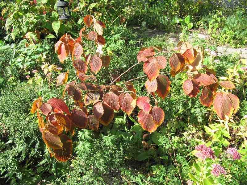 Meine Hamamelis fällt viel zu früh auf, sie ist schon im Sommer in die Herbstfärbung gegangen und so bleibt sie jetzt.