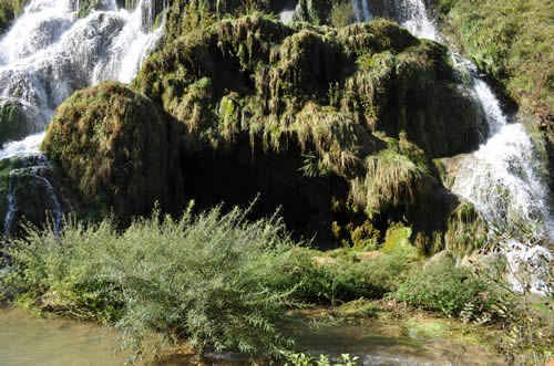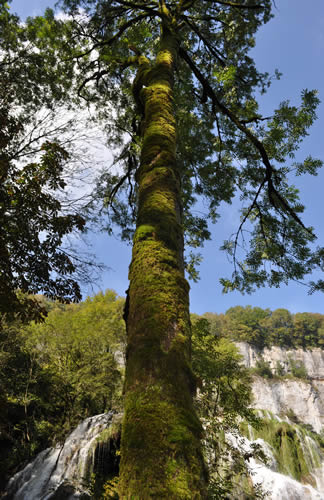 Hier herrscht eine ewige Feuchte, durch das wegspritzende Wasser.Diese grosse hohe Baum ist ganz bemosst bis oben.