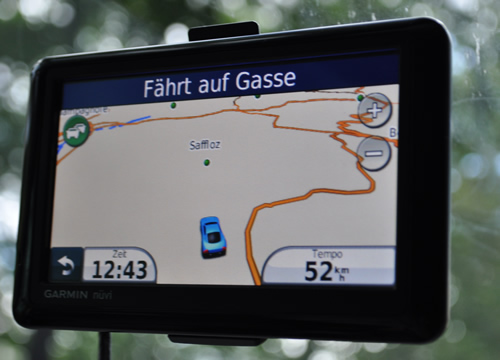 Weiter gehts.Oft fand das GPS nicht mal die auf der Karte eingezeichneten Strassen. ???Durch diese grüne und auch oft dunkle Waldstrasse zeigte es uns dies so an: