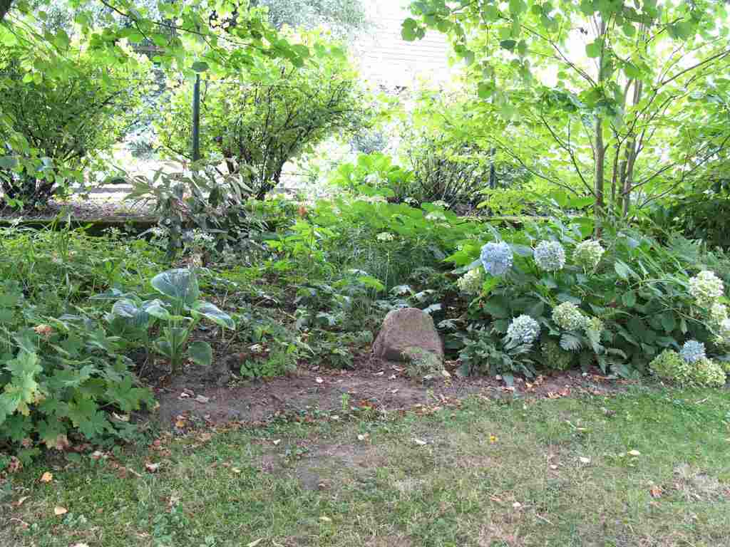 Ich habe dieses Jahr mit dem Projekt angefangen, musste jedoch recht bald feststellen, dass alles noch viel zu eng ist. Ich habe vor diesem Beet noch eine gemähte Fläche von 3 Metern Breite, die ich anfange umzugraben, wenn der Rest des Gartens einigermaßen fit für die kommende Gartensaison ist.Auf der diesem Beet gegenüber liegenden Seite stehen bereits ein großer Eschahorn und eine alte Hydrangea quercifolia, die thematisch passen. Die Bauernhortensie, die auf den Fotos zu sehen ist soll umgepflanzt werden.