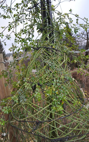 Paul Noel geht schon viel besser zum Wickeln.Ich mache das im Dezember und Januar, dann geht es am besten.Natürlich nur, wen keine Minusgrade sind.Das ist übrigens das "Holz", das letztes Jahr von 2 cm an wieder gewachsen ist. Die Triebe sind zwischen 2 bis 4 m lang.Der Päuli hatte nicht geblüht.