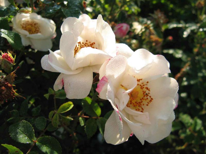 Danke, Procera.Noch höher, wow! Da ich mit ca. 1,8 m gerechnet hatte, pflanzte ich sie vor eine Tamariske vor 3 Jahren, und stellte mir vor, wie diese Zweige dann zur Rose hinunterhängen. Jetzt wird es also dann umgekehrt sein, die Tamariske, die dort schon lange Jahre steht, wird nun von der Morning Blush bedrängt.Hallo marcir,wunderschön deine Morning Blush, auch gut gewachsen.Sie kann aber noch viel höher werden bis 5-6 m.Hier eine remontierende Form davon:"Pearl Blush"nur ca. 2 m hoch.LGprocera