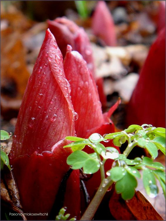 ...ist beim schwager im wärmeren stadtklima schon weiter heraussen...lg, brigitte...Paeonia mlokosewitschii...