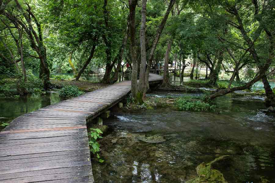 Dritter Tag und ein etwas weiterer Ausflug zum Krka Nationalpark, wo Wasser das Hauptthema ist - Flusslandschaft, Wasserfälle und leider zunächst auch als Regen.Auf Holzstegen geht's mitten durch die Wasserlandschaft und es plätschert und gluckst ringsum. Im Hochsommer sicher ein sehr angenehmes Ausflugsziel bei Temperaturen von mehr als 30 Grad.