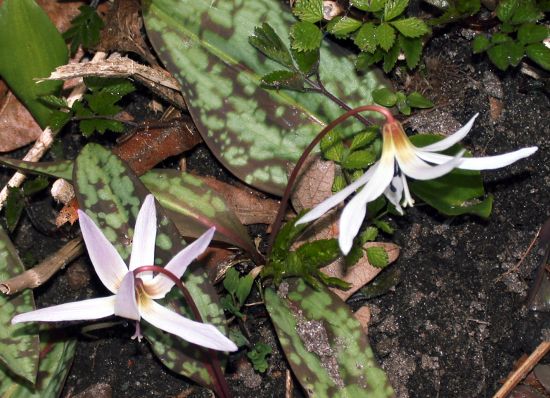 Ich habe vor drei Jahren oder so mal mit einer Nachbarin bei Gewiehs 10 Stück "Erythronium Mischung" geteilt. Sie hat eindeutig zwei r. White beauty dabei, ich nicht. Ich denke, es ist eine dens-canis-Sorte, die hat einen sehr ungünstigen Standort und ich habe einmal kurz von Schnecken zerfressene weiße Restblüten gesehn. Ich weiß also tatsächlich nur, daß sie weiß sind...welchen "weißen" erythronium hast du denn...dens-canis sorte oder den revolutum 'white beauty'?