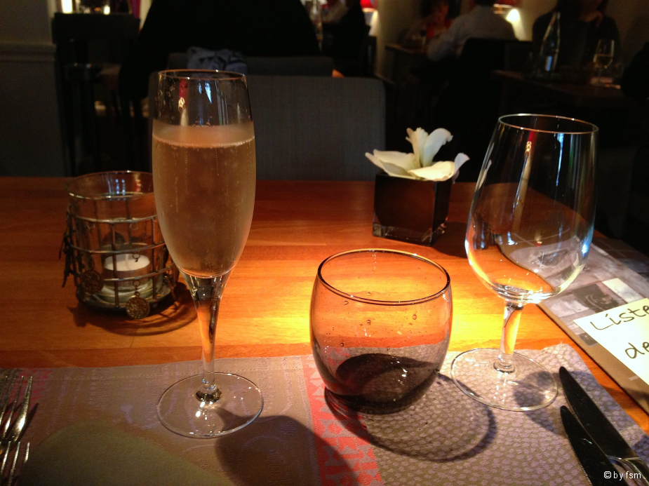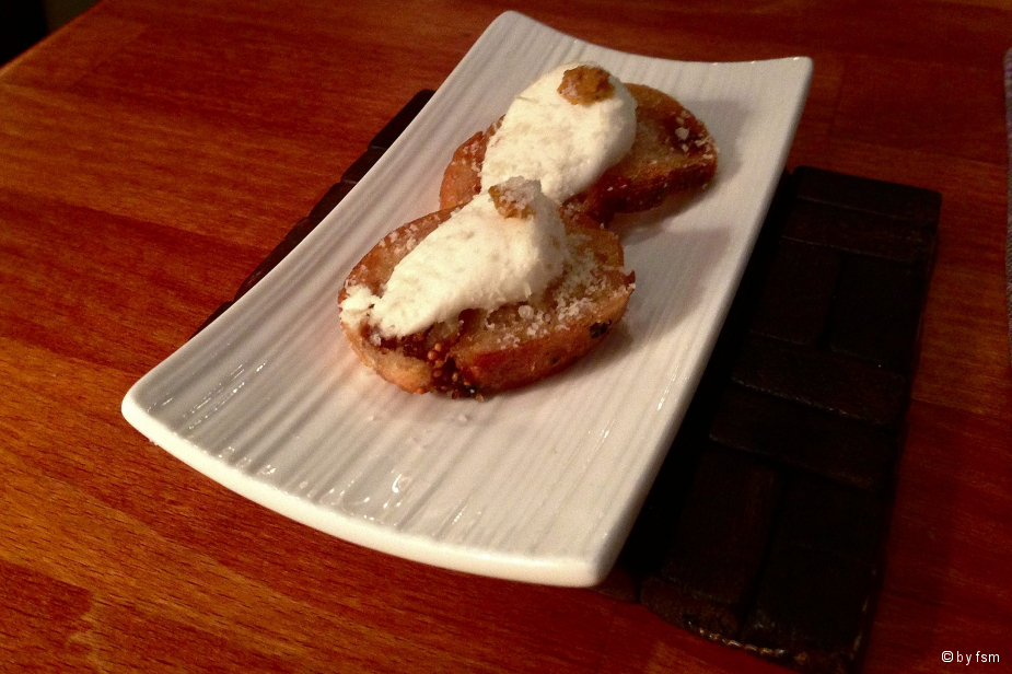 Nach einen Glas Champagnerhatte es einen Gruß aus der Küche (eine Scheibe fehlt schon...!