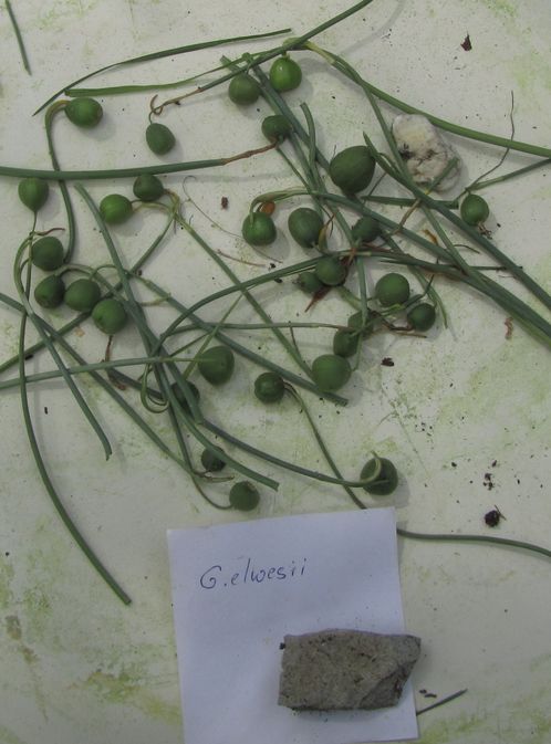 Leucojum vernum geht ganz genau so. Das habe ich am Anfang probiert.Aestivum sollte auch mal probiert werden.Heute habe ich mal Samenkapseln geerntet. Es scheinen doch einige taube früchte dabei zu sein. Wenn sie sich schwammig anfühlen sind sie taub. Aber nicht zu zeitig hart drücken dann können halbreife Samen Schaden nehmen. Sie reifen auf jeden Fall gut nach wenn man sie aufhebt. Die vor 10 Tagen vorab geernteten Früchte von G. elewesii gehen gerade auf. Perfekte lichtbraune Samen.Zuerst G.elwesii Ernte von heute. Die voher gernteten Früchte sind in der Wohnung gut nachgereift. Ich habe sie zwar ins Wasser gestellt, aber die Stengel sind nach wenigen Tagen abgefault.