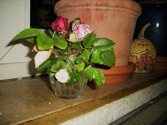 der letzte strauss, gestern gepflückt. (mrs. oakley fisher, ferdinand pichard, naheglut und seafoam)stanwell hat noch ca.15 knospen. wenn keine starken fröste kommen, gehen die noch auf.