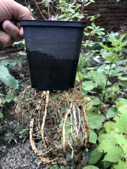 Interessant - da sieht man mal das gewaltige Wurzelwerk, das diese nicht besonders große Pflanze entwickelt. Ist da etwa schon ein Austrieb zu erkennen?