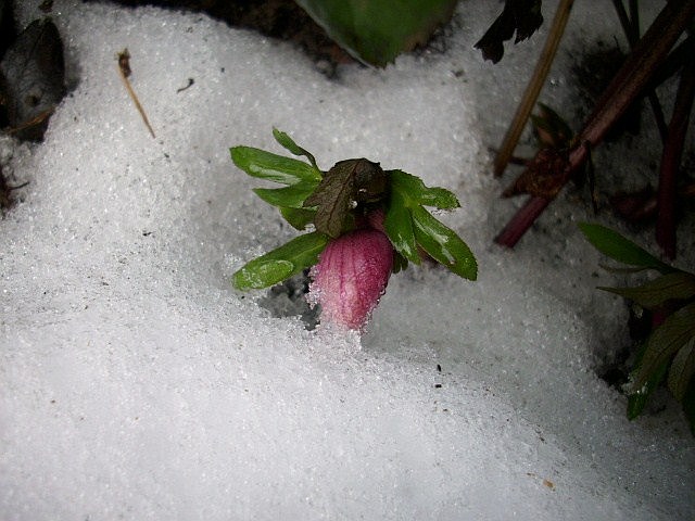 hier mal ein foto vom januar 2010. nachdem der ganze garten wochenlang von ca. 30cm scnee bedeckt gewesen war, tauchte bei schneeschmelze das auf. meine early purple hatte pünktlich mit dem blühen begonnen, obwohl vor dem schnee die knospen noch kaum aus dem boden schauten.
