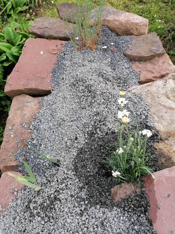 Also eine Pflanze ist schon in einem (öffentlichen) Beet, dessen oberste 30 cm aus 100% Kalksplitt bestehen. Zwischen Lavandula, Santolina, Gaillardia und anderem Trockengedöns. Da habe ich die Erde nur etwas abgebröselt.