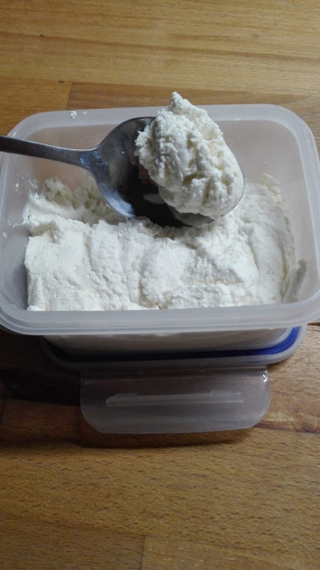 aber da ich aus der entstandenen Molke und Milch dann leckeren Ricotta mache brauche ich den Frischkäse nicht mehr.
