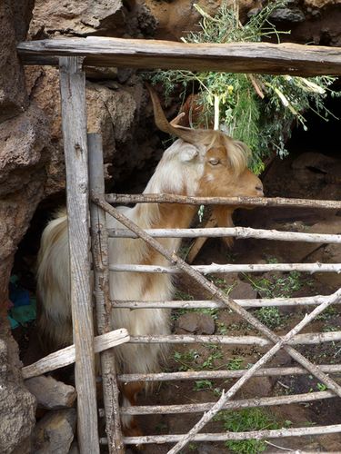 Genau! Doch selbst hier werden Ziegen langsam rar.3. Wandertag, von Los Sauces (bei San Andrès) nach Los Tilos und zurück.Anfangs Blick von oben in den Barranco (Trockenschlucht), nur wenige Terrassen sind noch bewirtschaftet,doch in milderen Tallagen viel Bananen, auch auf kleinsten Feldern.