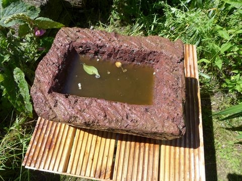 So, ich will mal weitererzählen:Der rote Steintrog erwies sich recht knifflig, weil das Steinmaterial weiche und harte Einschlüsse aufwies, weshalb immer wieder größere Brocken ausbrachen. Ich habe deshalb nach einem Schleifvorgang zur Glättung der Außenwände die Arbeiten an diesem Objekt eingestellt.Der Trog, resp. das Trögchen, wurde mit Heuchera bepflanzt.