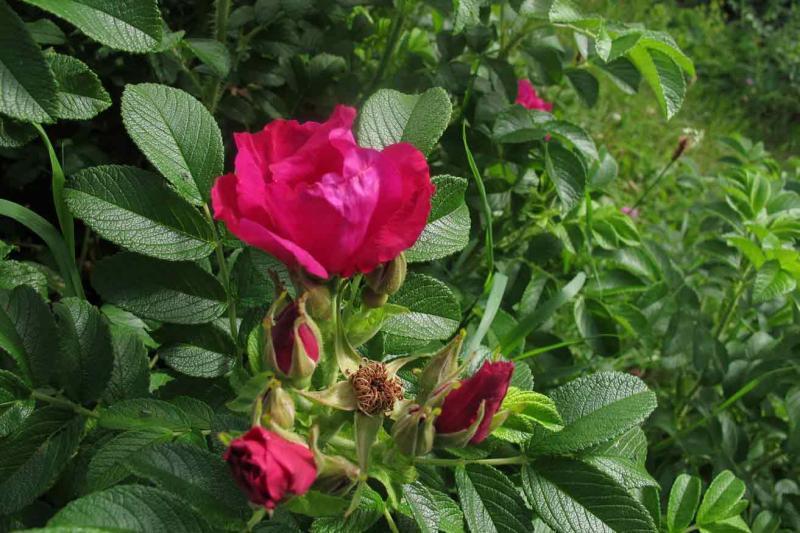 Ich habe sie von einer Freundin, die aus Schweden Hagebutten von dieser Rose mitgebracht hatte, u.a. weil sie so gut duftete. Inzwischen habe ich eine ansehnliche Hecke, die sich ständig verbreitert. Sie ähnelt Rosa rugosa, erscheint mir aber größer in der Blüte und dünkler. Wenn du magst, schick ich im Herbst einmal einen Ausläufer, damit du testen kannst, ob sie bei dir gedeiht - zu viel Kalk im Boden läßt sie nämlich kümmern und gelbes Laub produzieren. Ansonsten sind sie weder durch Trockenheit noch durch Fröste umzubringen, und wenn sie größer sind, auch nicht durch Wild, weil sie fiese Stacheln haben.