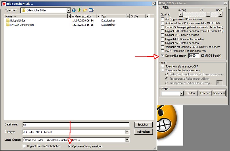 Hier nochn Screenshot vom IrfanView Speicherdialog.HTH