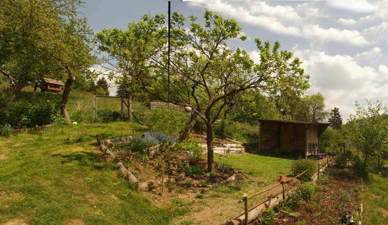 insgesamt 2000qm, davon 1500qm Obstwiese/Biotop.Ich habe auf der Wiese viele seltene Pflanzen entdeckt, Knabenkraut, andere, mir unbekannte Orchideenarten, Heidenelke, Johanniskraut, Fetthenne uvm. :DNächstes Jahr kommen Nachbars Schafe drauf, damit ich nicht so viel Mähen muß.
