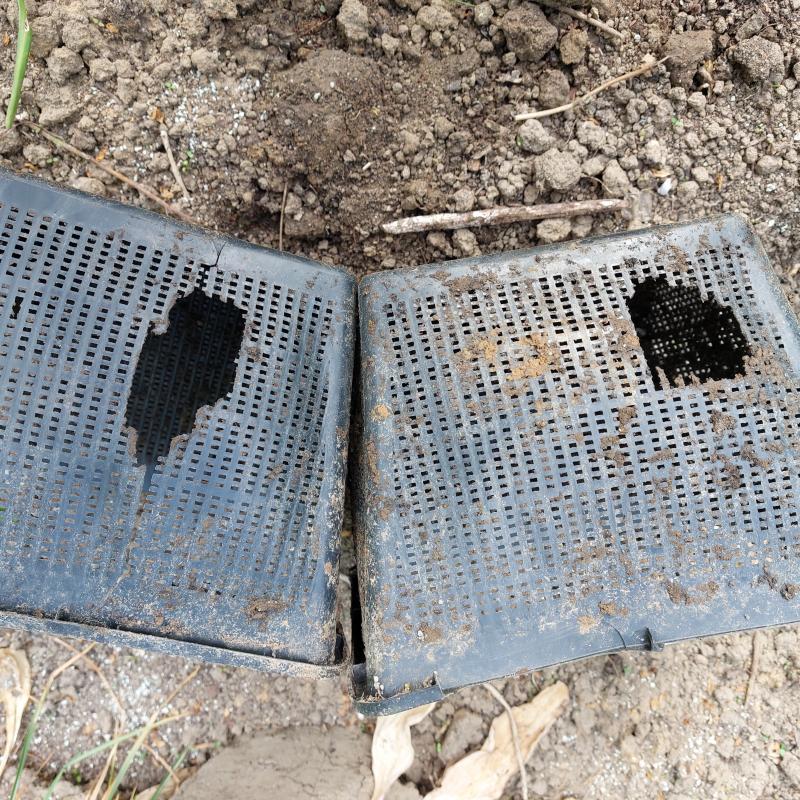 Im Frühjahr hatte ich mich schon gewundert warum manche Blumenwiebeln nicht austreiben, nachdem ich das hier gesehen habe wusste ich auch warum. Die haben sich durch die Körbe gefressen um an die Zwiebeln zu kommen.