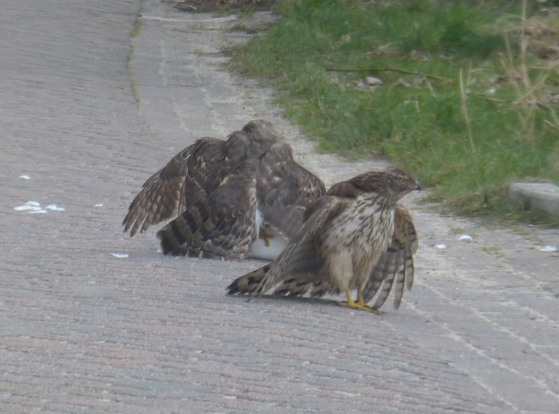 Kann bitte ein Mod das Jahr im Titel erweitern?Heute spielten sich Dramen vor unserer Haustür auf der Straße ab. Am hellichten Tag schlugen die beiden eine Taube, die letztlich sogar zu schwer war, um sie wegzuschleppen. Da ich im Auto saß, kam ich bis auf wenige Meter heran und hatte glücklicherweise die Kamera dabei.