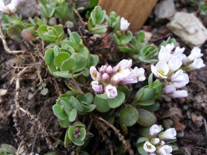 Bei mir immer einer der Ersten im Alpinum - Aethionema oppositifolium aus dem Nordwesten der Türkei (2360 m).