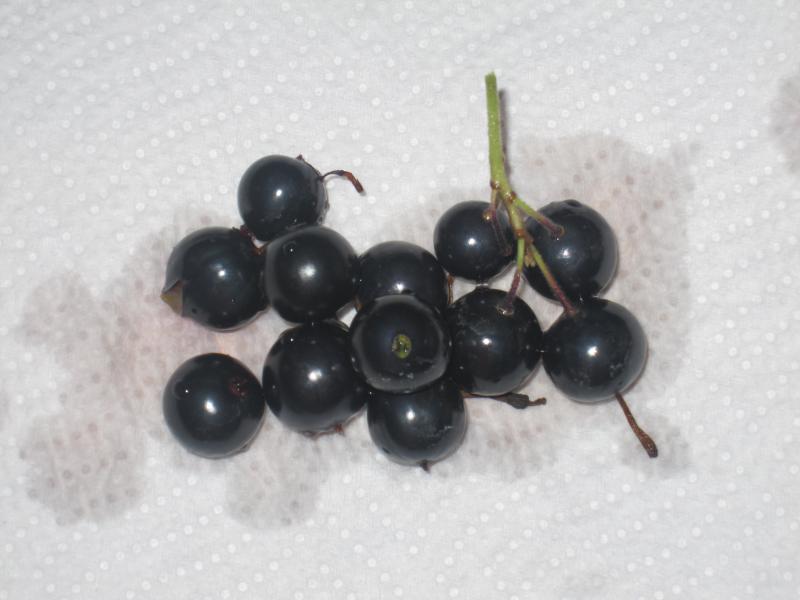 So die Erntezeit meiner Vierbeere ("Black Saphir") ist gekommen :)Mehr oder weniger sind alle Beeren über den Sommer gekommen (siehe vorherigen Post). Für das erste Erntejahr also eine schon sehr große Ernte, bedenkt man die Größe des Strauches. Zum Wuchs möchte ich noch kurz erwähnen, dass die Bodentriebe die sich im Frühjahr gebildet haben, bereits um die 160-180 cm hochgewachsen sind. Aus einem kleinen Strauch wurde also im 1. Standjahr schon ein richtig großer.Nun zu den Beeren selbst (siehe Foto im Anhang). Farblich tief schwarz, matt glänzend. Das Fruchtfleisch geht in Richtung gelb, ocker. Die größten Beeren sind so ca. 1,5 cm groß, im Durchschnitt ungefähr 1cm. Wie im Bild zu erkennen hängen sie an einzelnen Trauben, meist 6-8 Beeren zusammen.Soweit so gut, nun zum Geschmack: Den Geschmack genau zu beschreiben fällt natürlich nicht leicht, vor allem da jeder eine andere Definition von gut oder schlecht hat ;-)Anders als bei meinem Stachelbeeren, wo man zuerst die geballte süße und erst dann das Säuerliche der Schale schmeckt, verhält es sich bei meiner Vierbeere genau andersrum. Zuerst merkt man das Säuerliche, welches dann aber schnell von einem leicht süßlichen Geschmack/Aroma abgelöst wird. Also nicht gleich ausspucken wenn man beim ersten Reinbeißen den säuerlichen ersten Eindruck wahrnimmt, so geschehen bei meiner Mutter