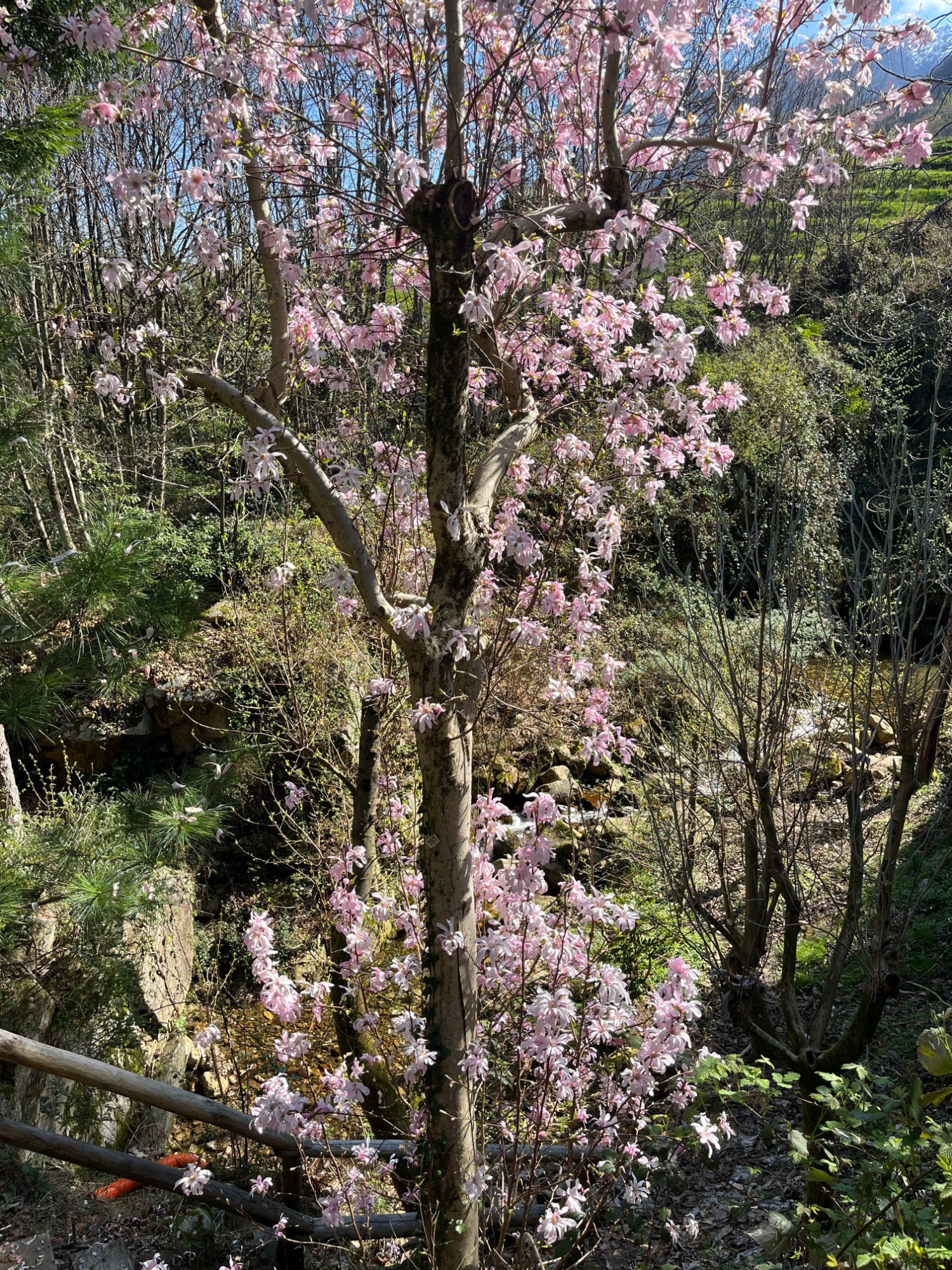 Wir waren nach zehn Jahren wieder mal dort. Der Park ist keine Stiftung mehr, sondern gehört wieder wie die Gärtnerei Reto Eisenhut, der aber bisher vergeblich einen Nachfolger sucht. Ich wollte ihn näher befragen, aber er hatte nach Jahrzehnten seine ehemalige Lehrerin zu Besuch, und seine Frau war mit Kunden zu beschäftigt. Wir hatten glücklicherweise die Hochblüte der inzwischen über 600 Magnolien und der über 1000 Kamelien erwischt. Der Park kostet jetzt generell Eintritt, und nach wie vor muss man gut zu Fuß in dem steilen Gelände sein.