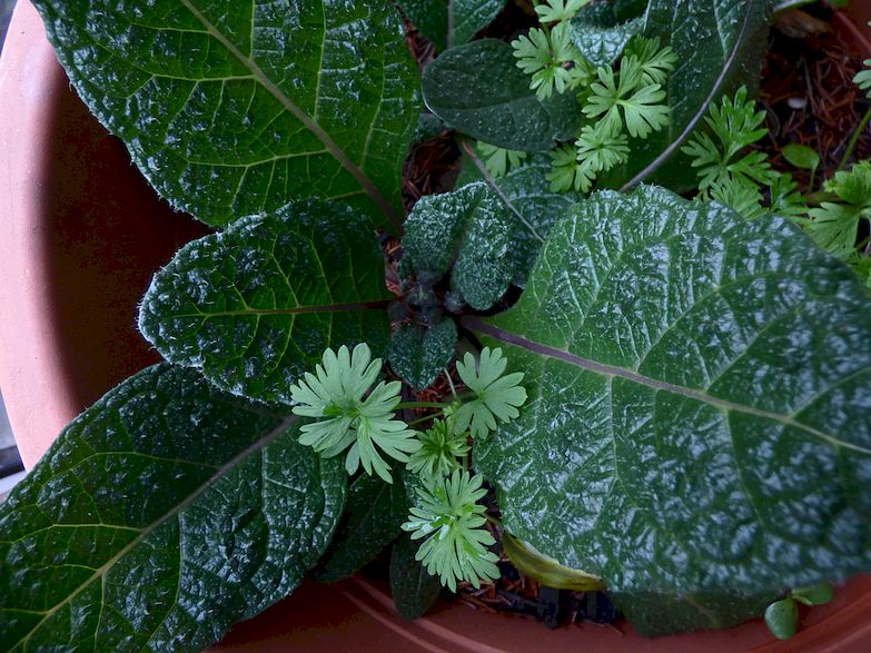 Da die Tomaten da recht gesund waren habe ich die Mandragora dort ausgesäht. Diesen Frühling kamen noch Samen von Delphinium grandiflorum hinzu. Die sich erst jetzt entschlossen haben zu keimen. Außerdem sind noch ein paar eigene Liliensämlinge drin. Deren Samen dort entsorgt wurden.