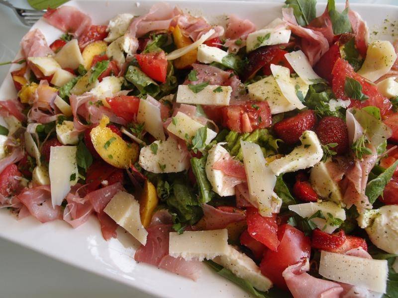 und gestern den restlichen romana mit allerlei kühlschrankresten (roher schinken, mozzarella, parmesan, tomaten, nektarinen, erdbeeren) und knoblauchbrot.boah ist das ein luxus die fotos nicht mehr verkleinern zu müssen