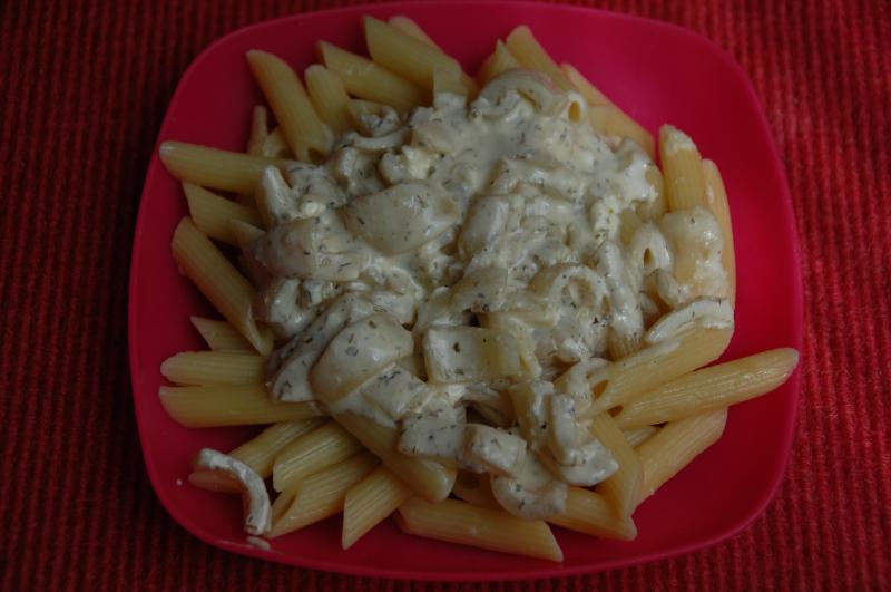 . Davon nehme ich gern etwas und tausche gegen meine griechischen Penne.Penne rigate mit Soße aus Cretan Peppers (weißer Paprika), Knoblauch, Frischkäse, Schafsmilchfeta, Kräuter der Provence.