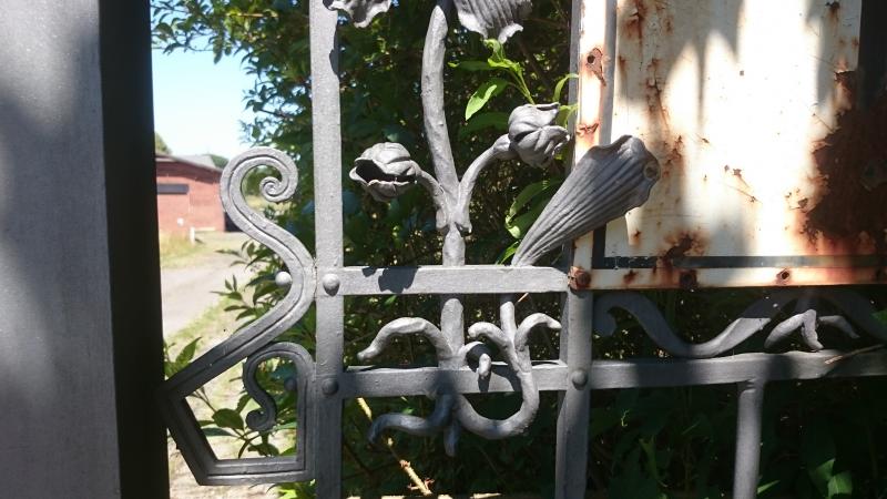 Toll!, Dann haben wir jetzt, zusammenfassend gesagt, ein gründerzeitstilisiertes, materialbedingt etwas gröber gefertigtes Jugendstilsumpfblutauge mit Hang zur Johanniskrautlilie, 1A Jugendstilblättern begleitet von den Zaunspitzen in Form heraldischer Lilien.Danke euch für das gemeinsame konstruieren. Ich bin mit dem Ergebnis durchaus zufrieden! :DIch werde bei nächster Gelegenheit noch ein Bild machen und hier reinstellen. Übrigens, Baujahr ist wahrscheinlich 1890. Da war Deutschland noch ein Land der Schmiede...