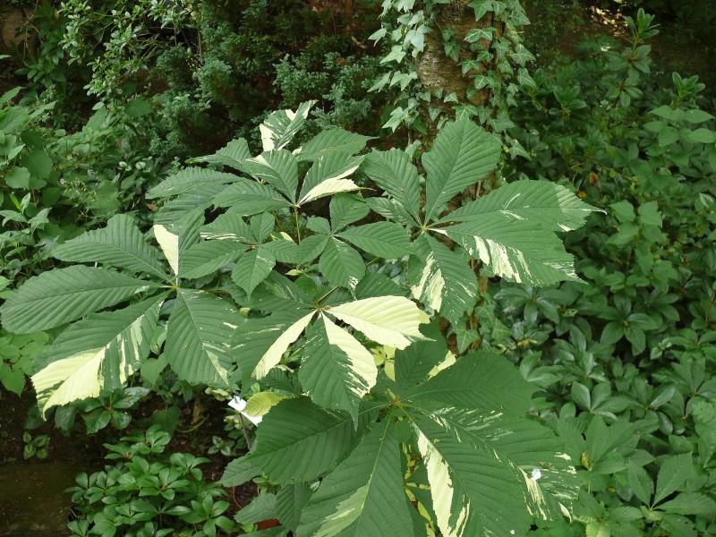 Hier ein aktuelles Bild meines panaschierten Sämlings von Aesculus hippocastanum im Alter von 5 Jahren: