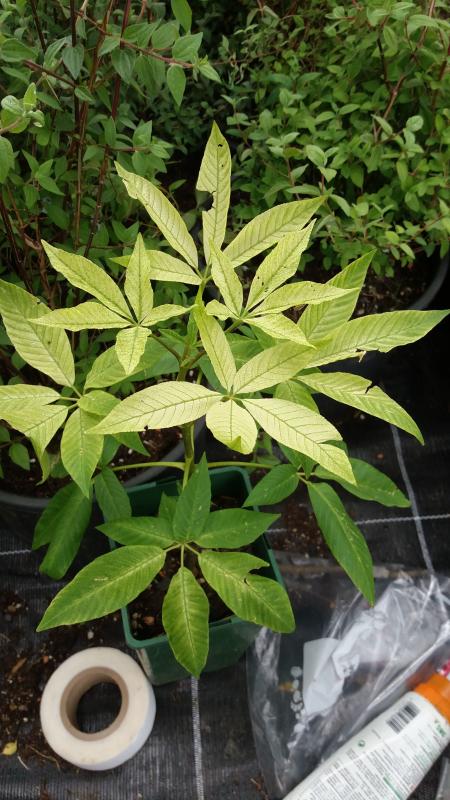 Neulich wollte ich eine Aesculus californica umveredeln, es dann aber doch nicht übers Herz gebracht. Die Blätter sind im Austrieb wie chlorotisch und vergrünen später.